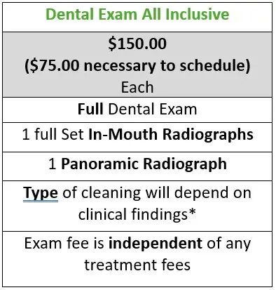 * If the patient has no periodontal disease, a normal cleaning will be done; however, if a deep cleaning is necessary, it will require its own treatment plan and fees and a normal cleaning will not be done in its place.